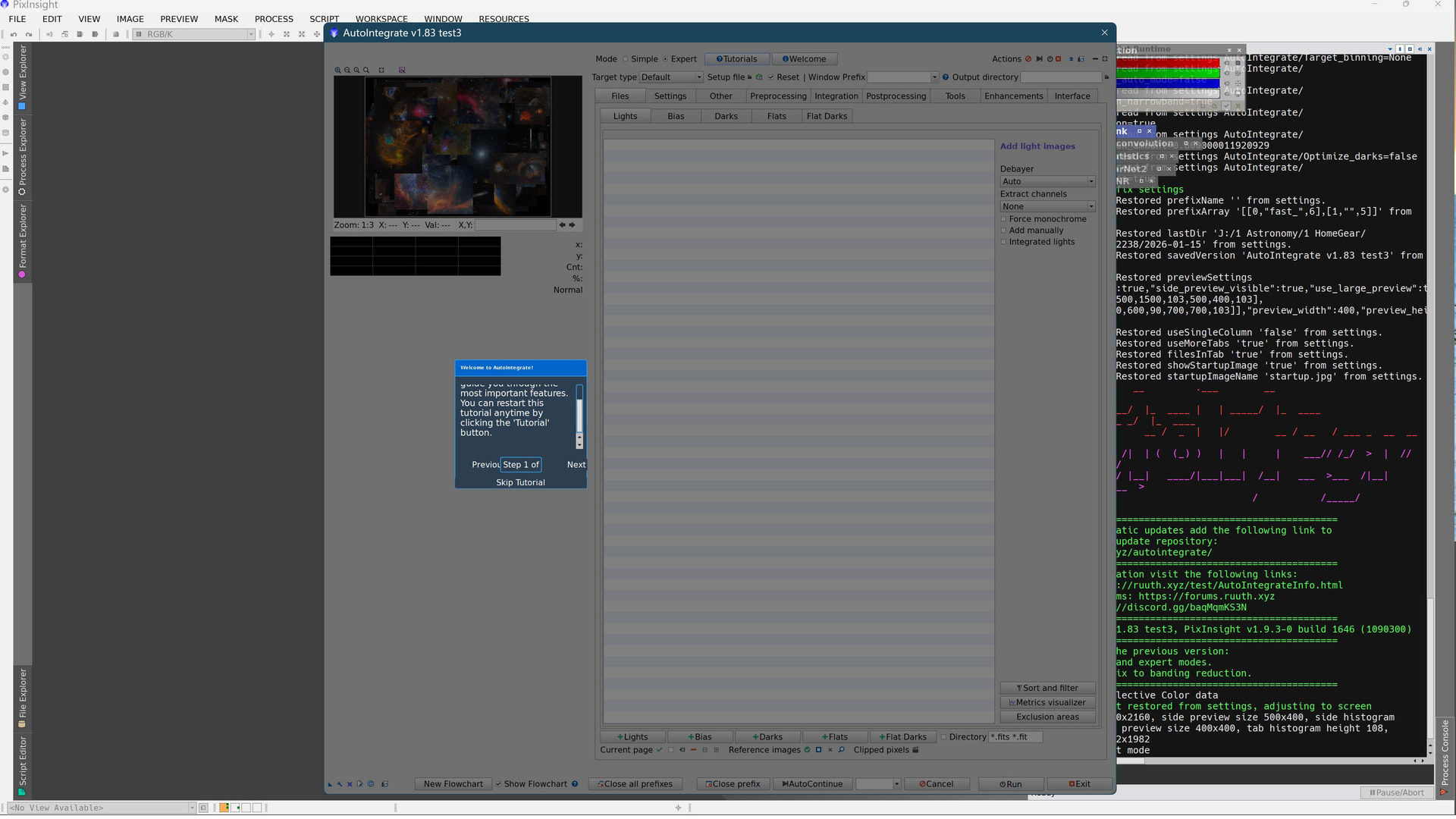 I believe the problem was that debugging mode was enabled in the AutoIntegrate code for banding reduction. I have fixed that one and also tried to fix the tutorial window size problem. It would be great if you can try it out and check that problems are fixed.